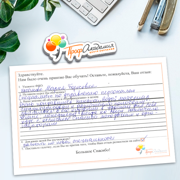 • По окончании курса профессиональной переподготовки управления персоналом выдается сертификат.
